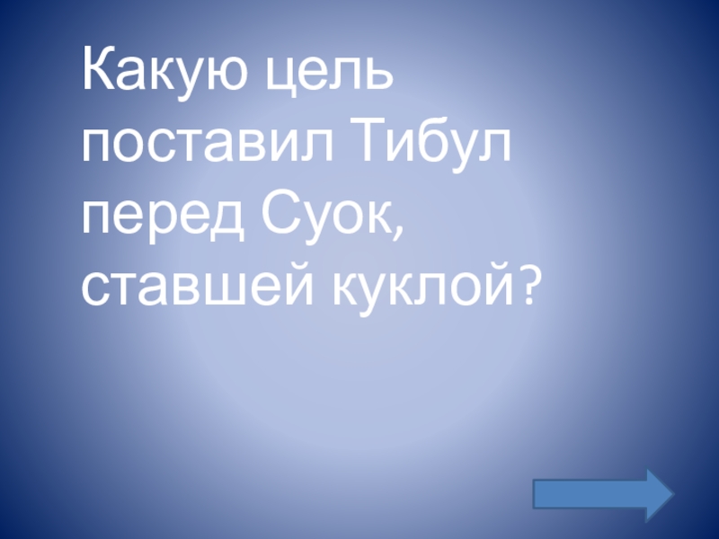 Слайд 39Какую цель поставил Тибул перед Суок, ставшей куклой?