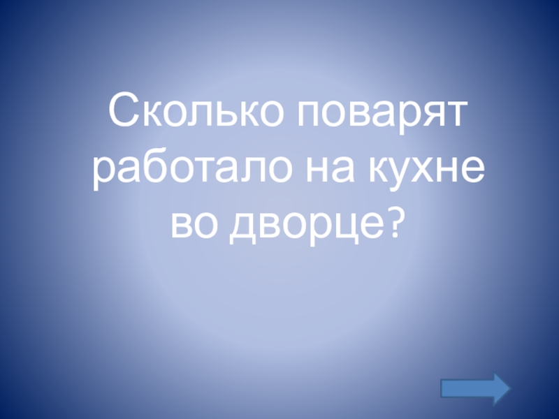 Слайд 75Сколько поварят работало на кухне во дворце?