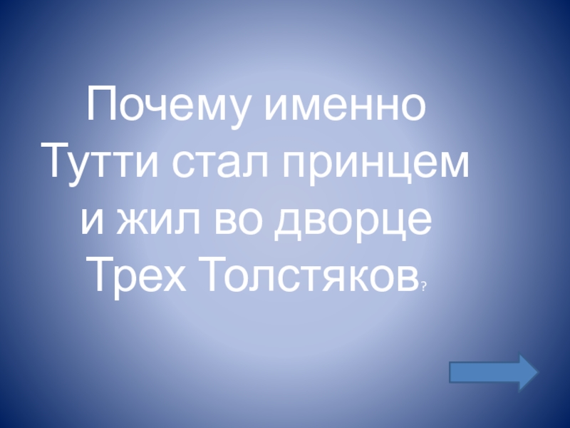 Слайд 67Почему именно Тутти стал принцем и жил во дворце Трех Толстяков?