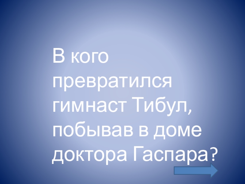 Слайд 31В кого превратился гимнаст Тибул, побывав в доме доктора Гаспара?