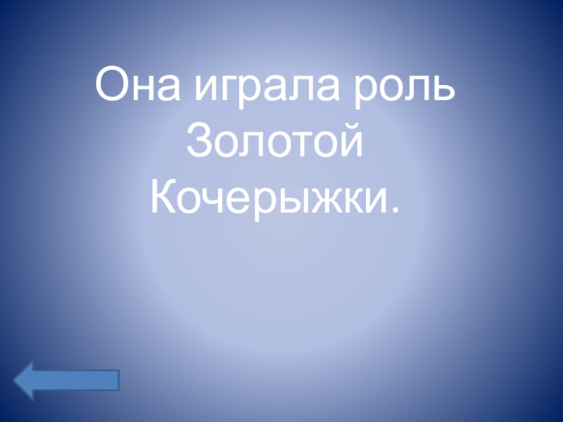 Слайд 14Она играла роль Золотой Кочерыжки.