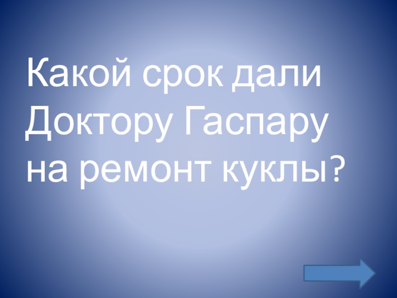 Слайд 27Какой срок дали Доктору Гаспару на ремонт куклы?