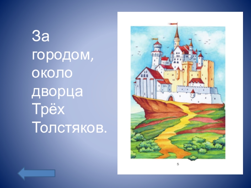 Слайд 26За городом, около дворца Трёх Толстяков.