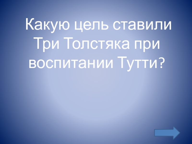 Слайд 77Какую цель ставили Три Толстяка при воспитании Тутти?