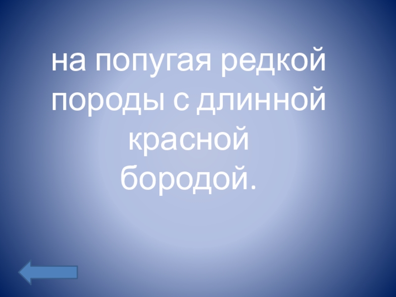 Слайд 48на попугая редкой породы с длинной красной бородой.