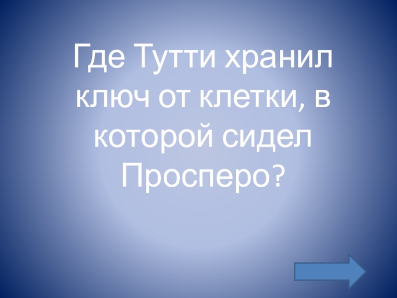 Слайд 61Где Тутти хранил ключ от клетки, в которой сидел Просперо?