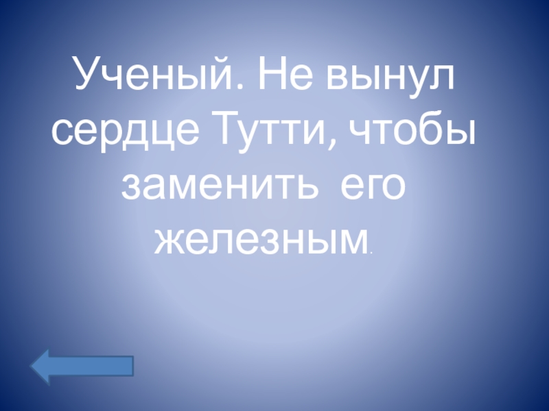 Слайд 60Ученый. Не вынул сердце Тутти, чтобы заменить его железным.