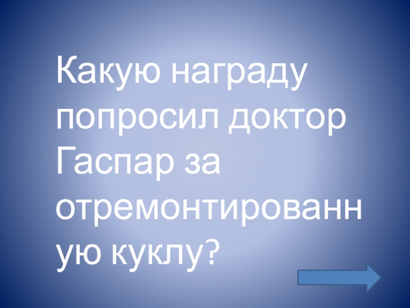 Слайд 21Какую награду попросил доктор Гаспар за отремонтированную куклу?