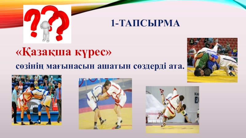 1-тапсырма  «Қазақша күрес» сөзінің мағынасын ашатын сөздерді ата.