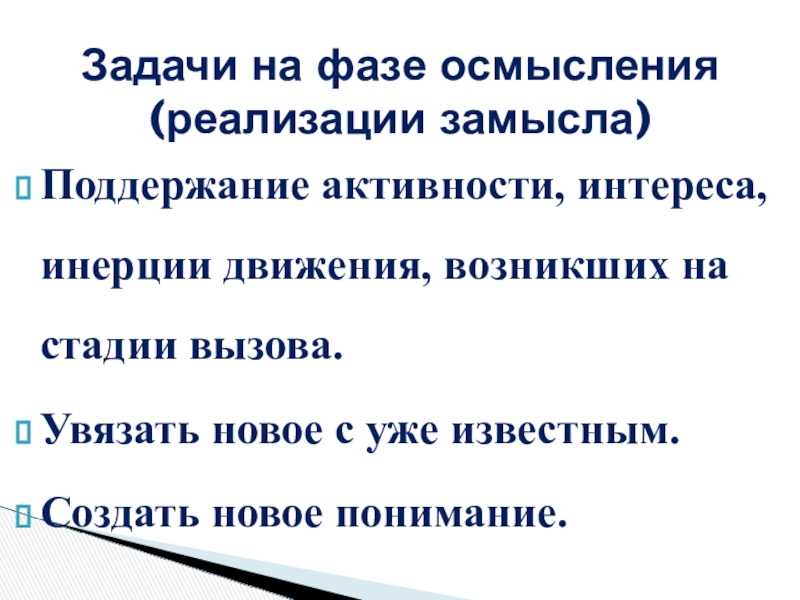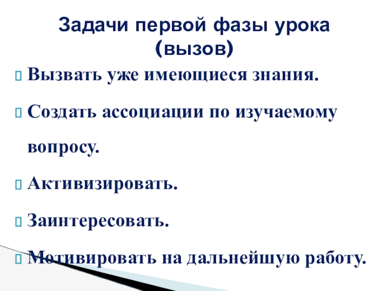 Задачи первой фазы урока (вызов)
