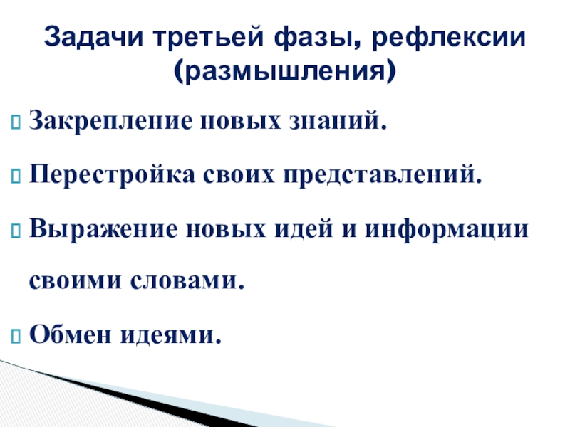 Задачи третьей фазы, рефлексии (размышления)