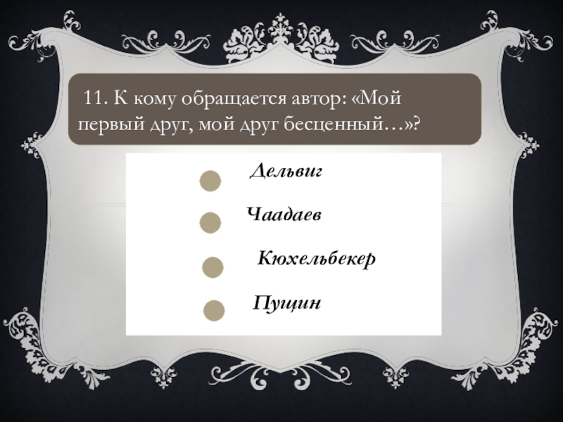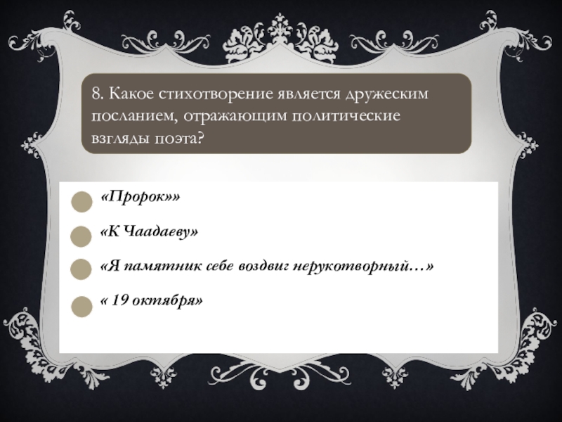 8. Какое стихотворение является дружеским посланием, отражающим политические взгляды поэта?