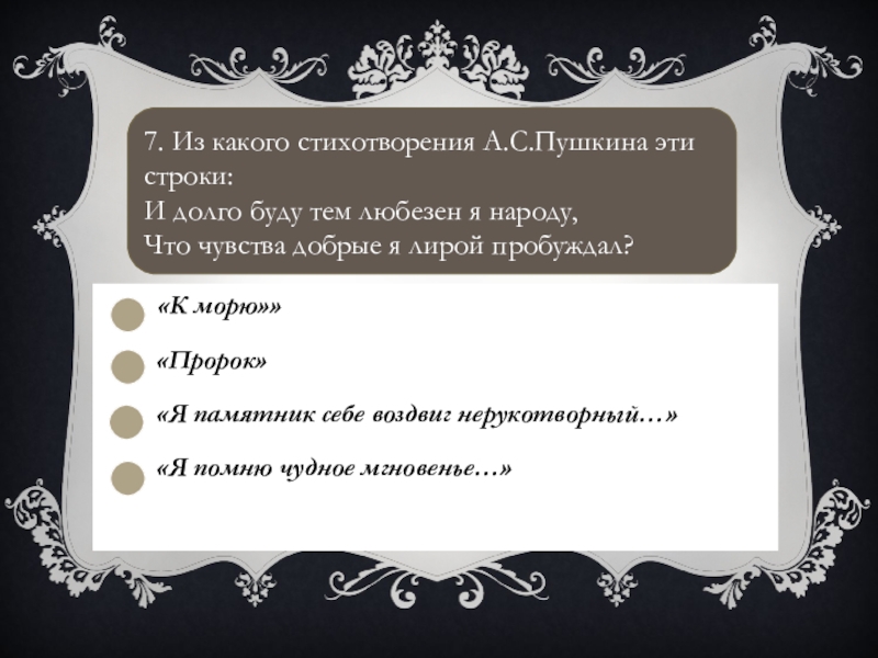 7. Из какого стихотворения А.С.Пушкина эти строки: