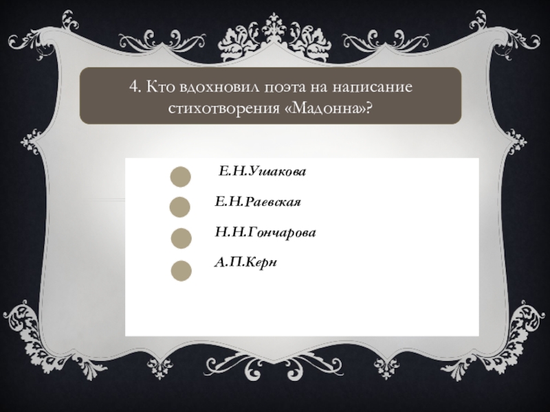 4. Кто вдохновил поэта на написание стихотворения «Мадонна»?