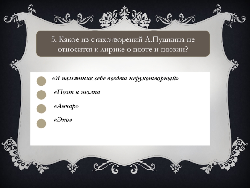 5. Какое из стихотворений А.Пушкина не относится к лирике о поэте и поэзии?