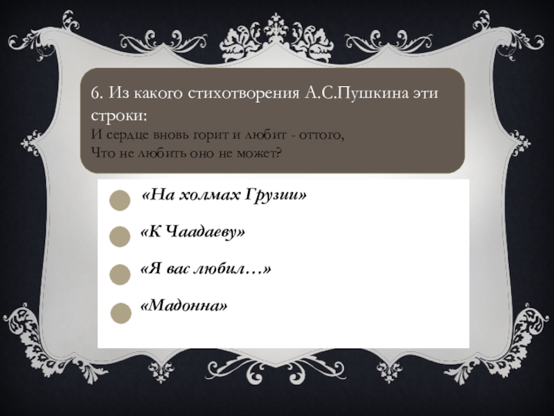 6. Из какого стихотворения А.С.Пушкина эти строки: