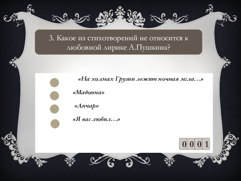 3. Какое из стихотворений не относится к любовной лирике А.Пушкина?
