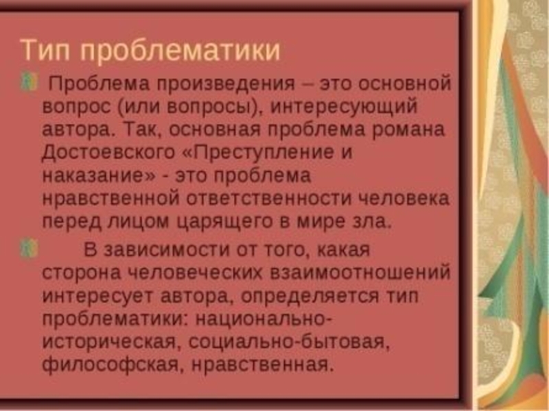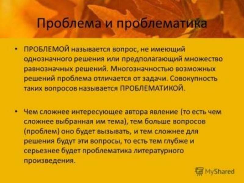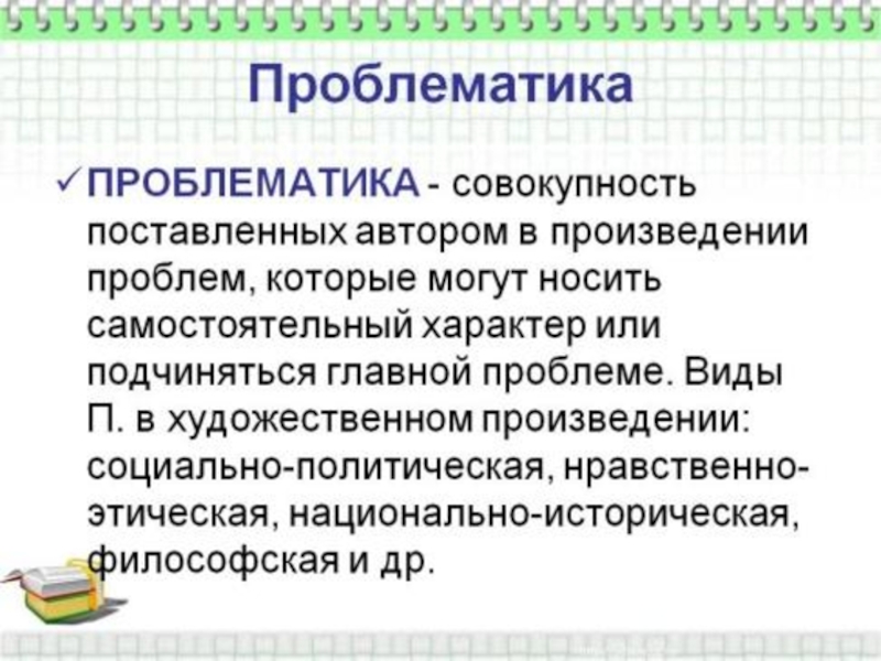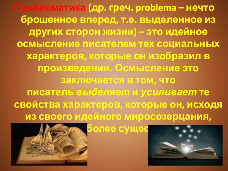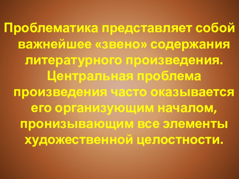 Проблематика представляет собой важнейшее «звено» содержания литературного произведения. Центральная проблема произведения