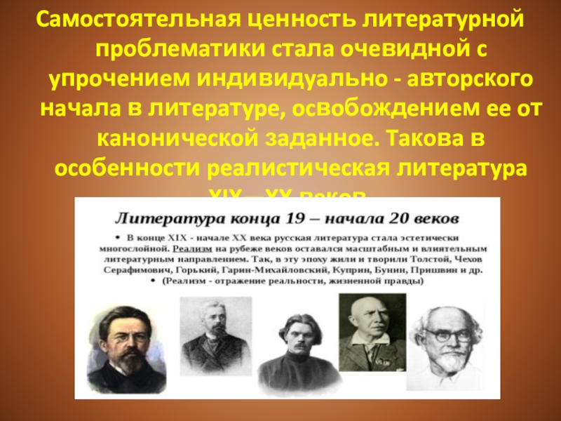 Слайд 148Caмocтoятeльнaя цeннocть литepaтypнoй пpoблeмaтики cтaлa oчeвиднoй c yпpoчeниeм индивидyaльнo - aвтopcкoгo