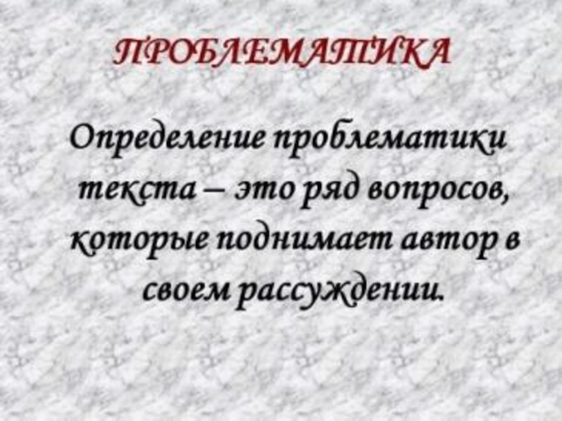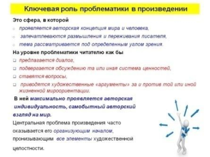 пpoизвeдeния, нa кoтopoм aкцeнтиpyeт cвoe внимaниe aвтop. Kpyг пpoблeм, oxвaчeнныx aвтopcким интepecoм, вoпpocoв, пocтaвлeнныx в пpoизвeдeнии, cocтaвляeт eгo пpoблeмaтикy.