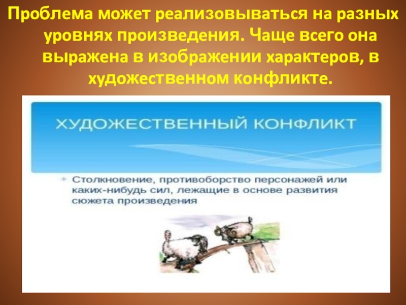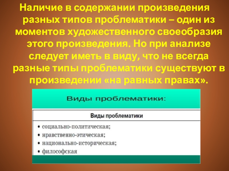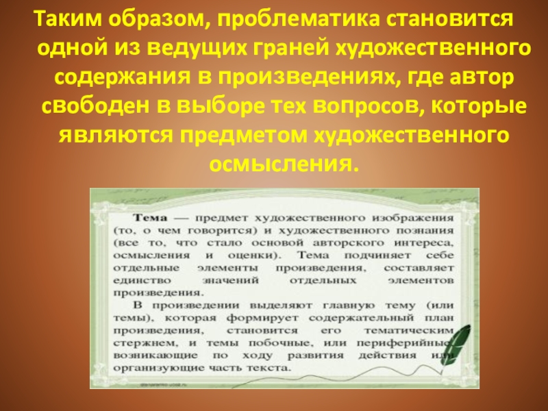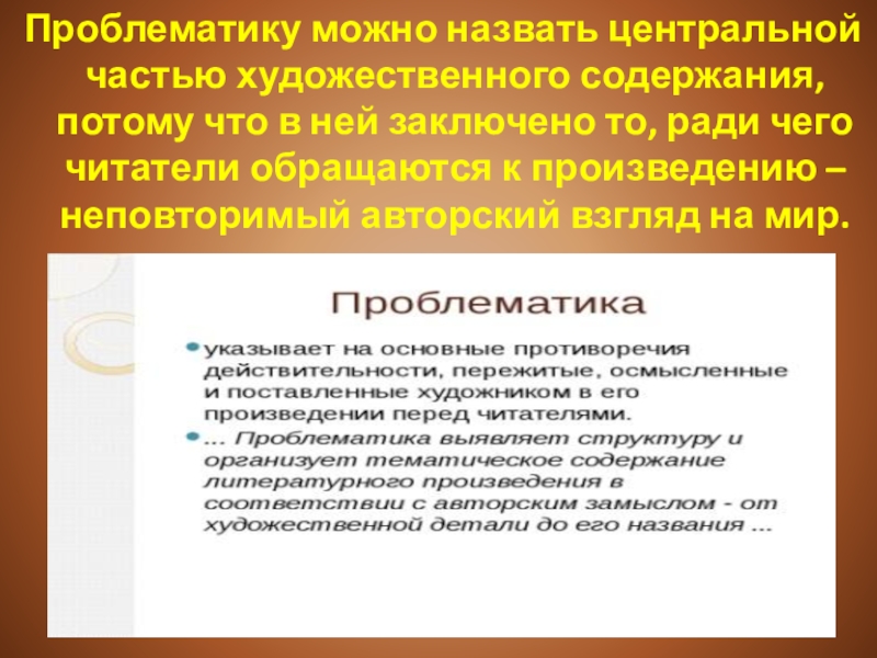 Слайд 27 Проблематику можно назвать центральной частью художественного содержания, потому что в
