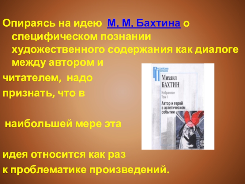 Опираясь на идею М. М. Бахтина о специфическом познании художественного содержания