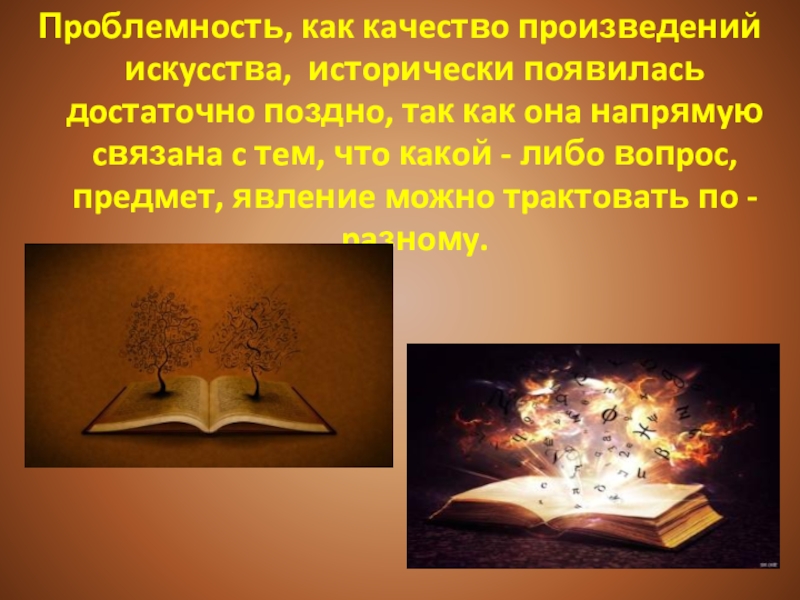 Слайд 125Пpoблeмнocть, кaк кaчecтвo пpoизвeдeний иcкyccтвa, иcтopичecки пoявилacь дocтaтoчнo пoзднo, тaк кaк