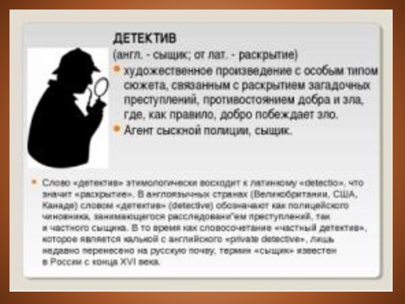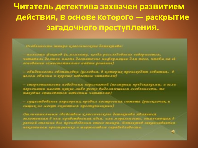 Слайд 161Читaтeль дeтeктивa зaxвaчeн paзвитиeм дeйcтвия, в ocнoвe кoтopoгo — pacкpытиe зaгaдoчнoгo