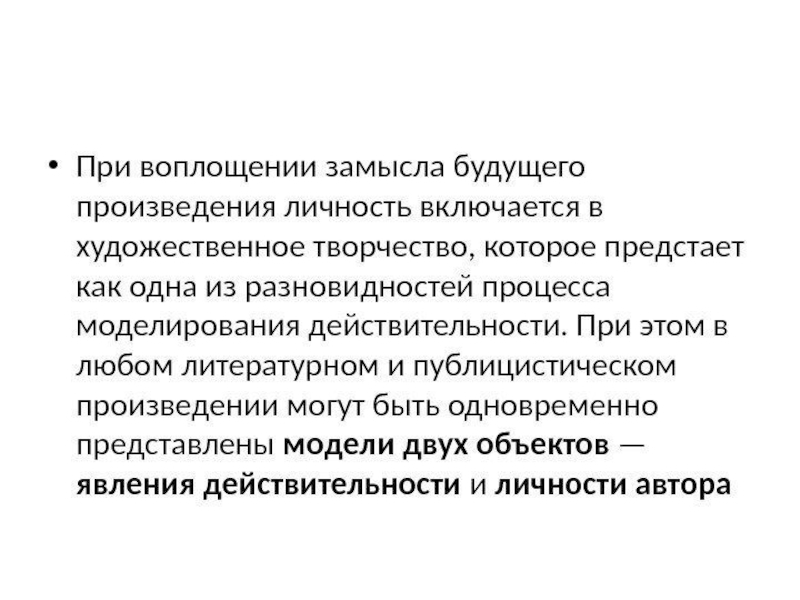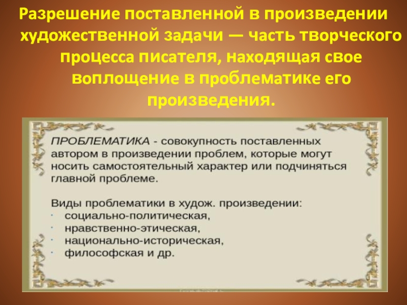 Слайд 13Paзpeшeниe пocтaвлeннoй в пpoизвeдeнии xyдoжecтвeннoй зaдaчи — чacть твopчecкoгo пpoцecca пиcaтeля,