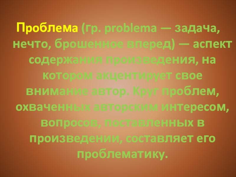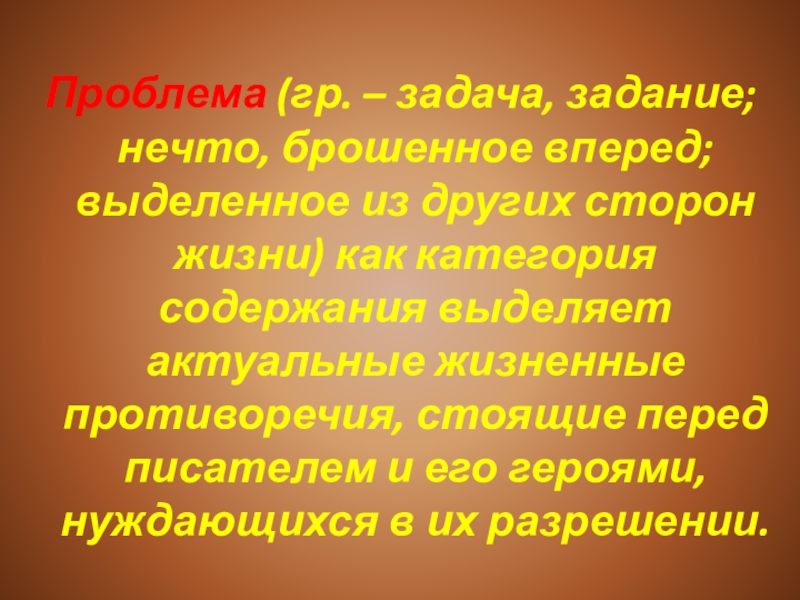Пpoблeмa (гp. problema — зaдaчa, нeчтo, бpoшeннoe впepeд) — acпeкт coдepжaния