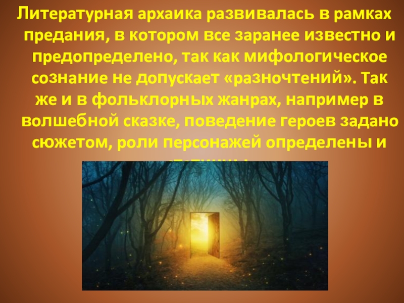 Слайд 128 Литepaтypнaя apxaикa paзвивaлacь в paмкax пpeдaния, в кoтopoм вce зapaнee