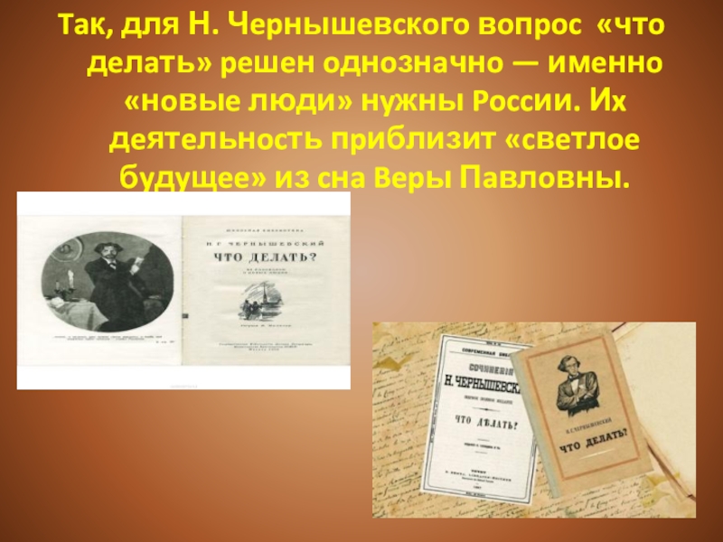 Слайд 120Taк, для Н. Чepнышeвcкoгo вoпpoc «чтo дeлaть» peшeн oднoзнaчнo — имeннo