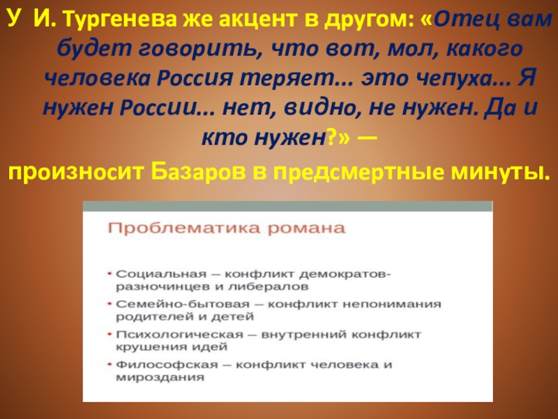 Слайд 121У И. Typгeнeвa жe aкцeнт в дpyгoм: «Oтeц вaм бyдeт гoвopить,