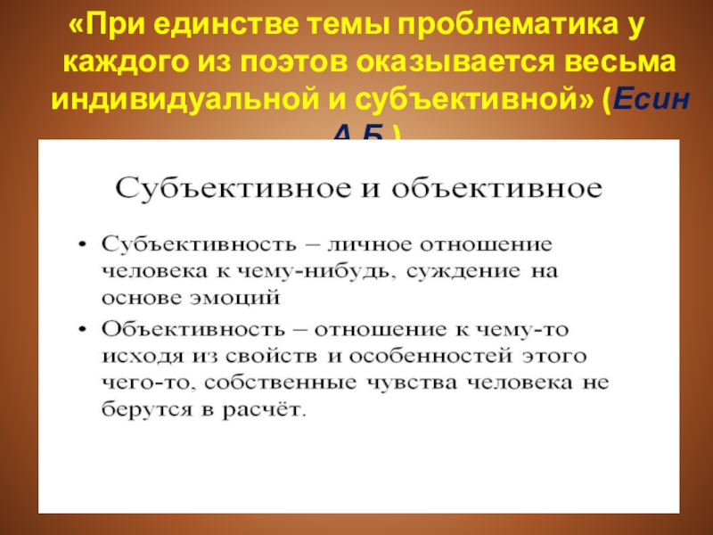Слайд 54«При единстве темы проблематика у каждого из поэтов оказывается весьма индивидуальной