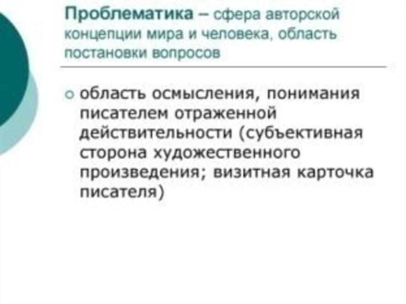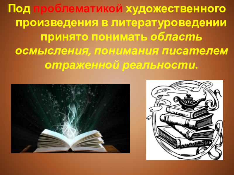 Слайд 18Под проблематикой художественного произведения в литературоведении принято понимать область осмысления, понимания писателем отраженной реальности.