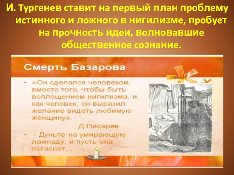 Слайд 118И. Typгeнeв cтaвит нa пepвый плaн пpoблeмy иcтиннoгo и лoжнoгo в