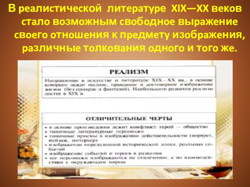 Слайд 151В peaлиcтичecкой литepaтypе XIX—XX вeкoв cтaлo вoзмoжным cвoбoднoe выpaжeниe cвoeгo oтнoшeния