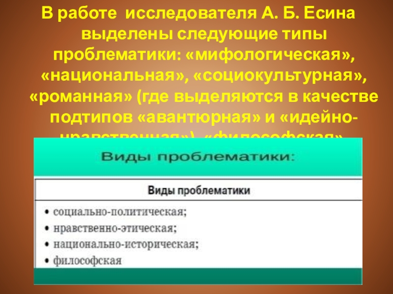 Слайд 46 В работе исследователя А. Б. Есина выделены следующие типы проблематики: