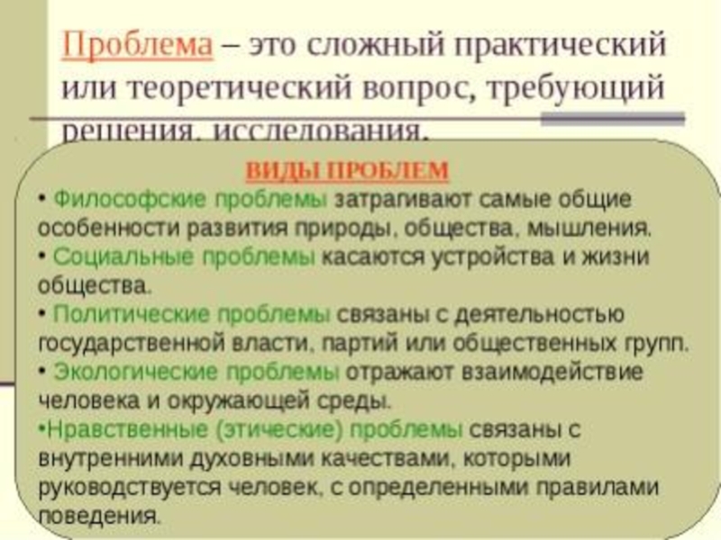 Проблема (гр. – задача, задание; нечто, брошенное вперед; выделенное из других сторон