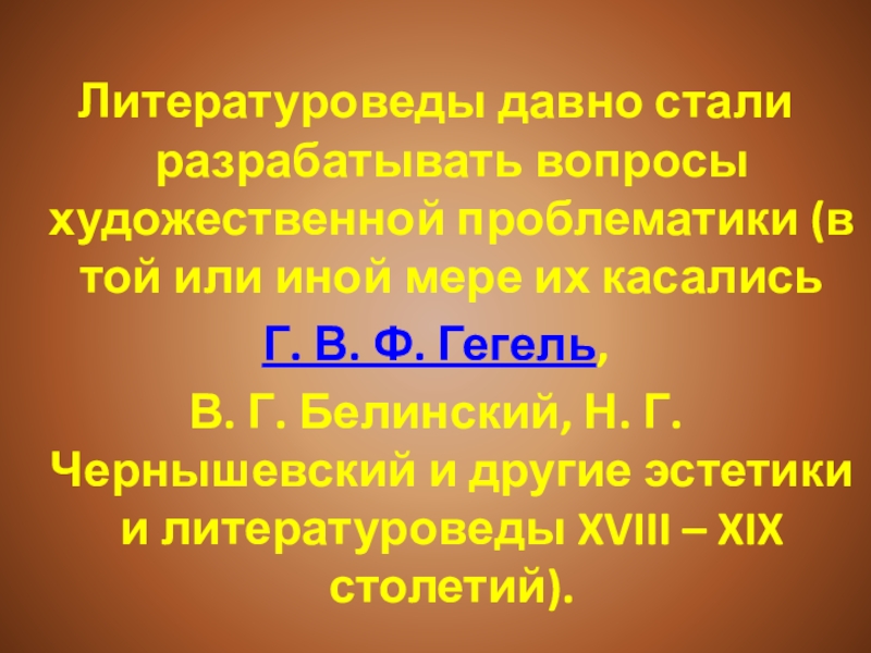 Литературоведы давно стали разрабатывать вопросы художественной проблематики (в той или иной