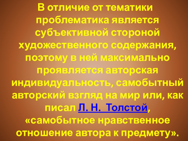 Слайд 32 В отличие от тематики проблематика является субъективной стороной художественного содержания,