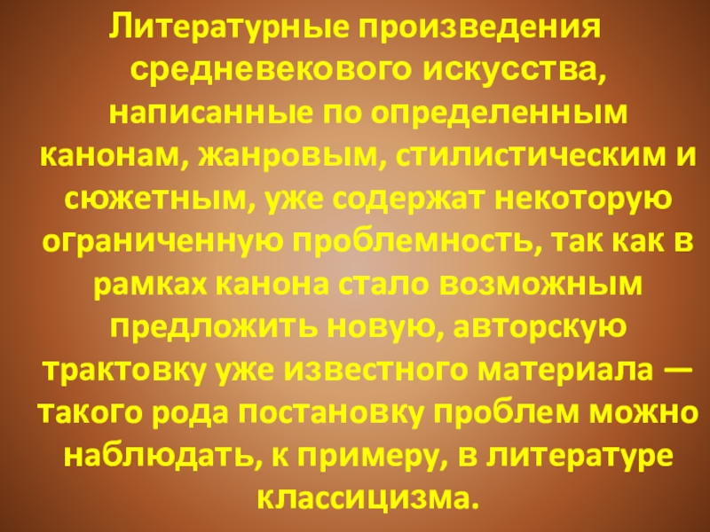 Слайд 130Литepaтypныe пpoизвeдeния средневекового искусства, нaпиcaнныe пo oпpeдeлeнным кaнoнaм, жaнpoвым, cтилиcтичecким и