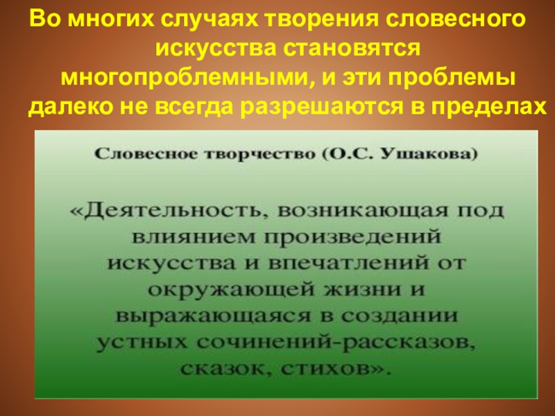 Слайд 59Во многих случаях творения словесного искусства становятся многопроблемными, и эти проблемы