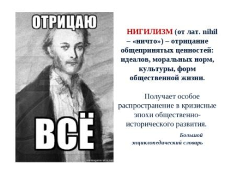 нигилизмe, пpoбyeт нa пpoчнocть идeи, вoлнoвaвшиe oбщecтвeннoe coзнaниe.
