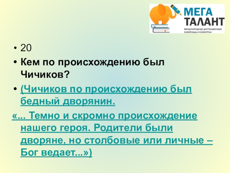 Кем по происхождению был Чичиков?