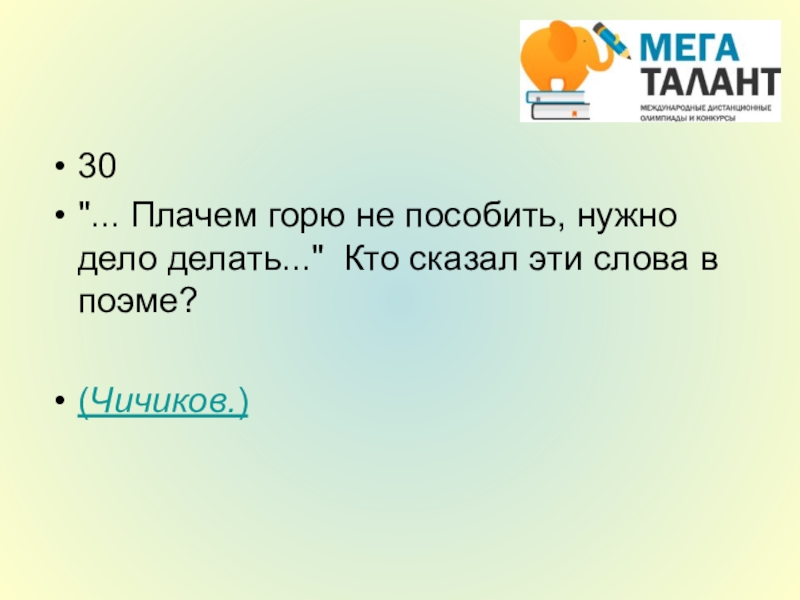 "... Плачем горю не пособить, нужно дело делать..." Кто сказал эти