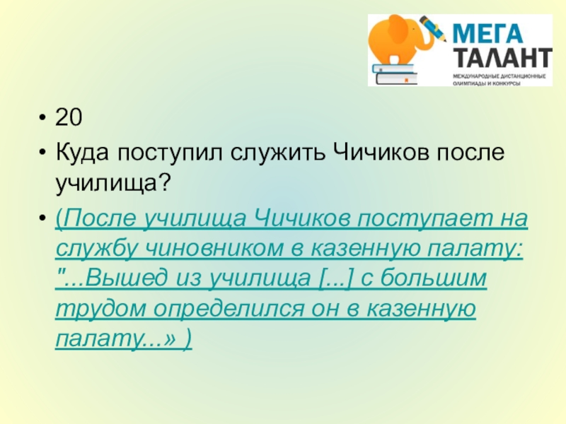(После училища Чичиков поступает на
