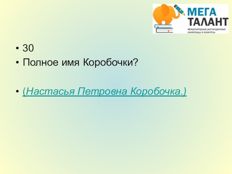 Полное имя Коробочки?