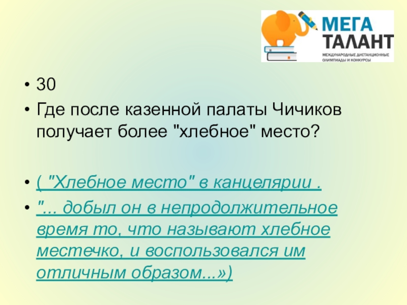 Где после казенной палаты Чичиков получает более "хлебное" место?