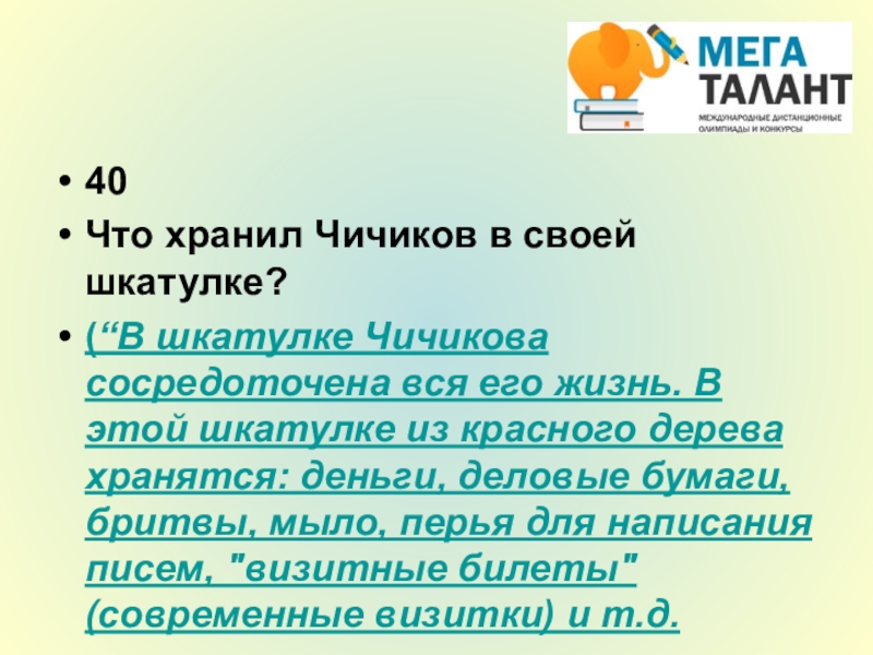 Что хранил Чичиков в своей шкатулке?